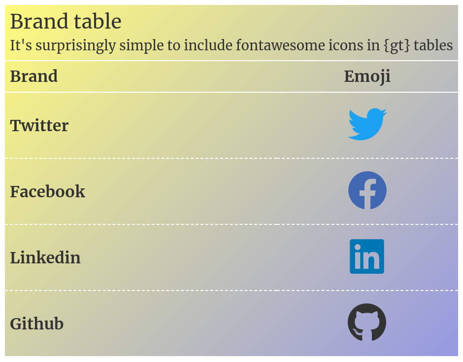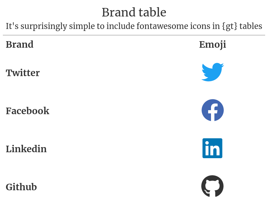 It's surprisingly simple to include fontawesome icons in {gt} tables
